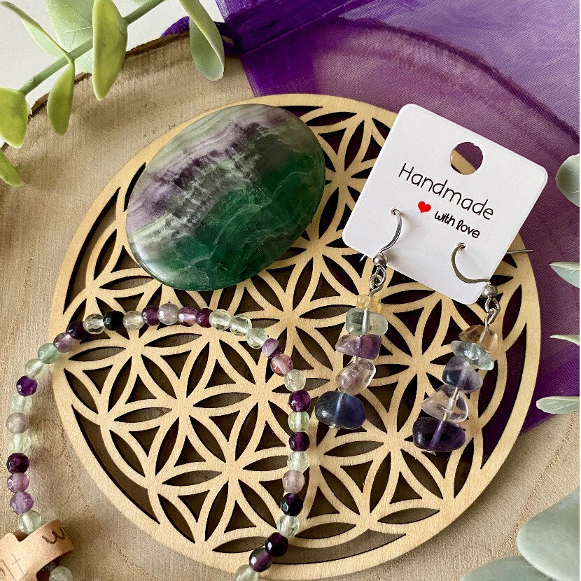 Boucles d'oreilles acier inoxydable chips Fluorite