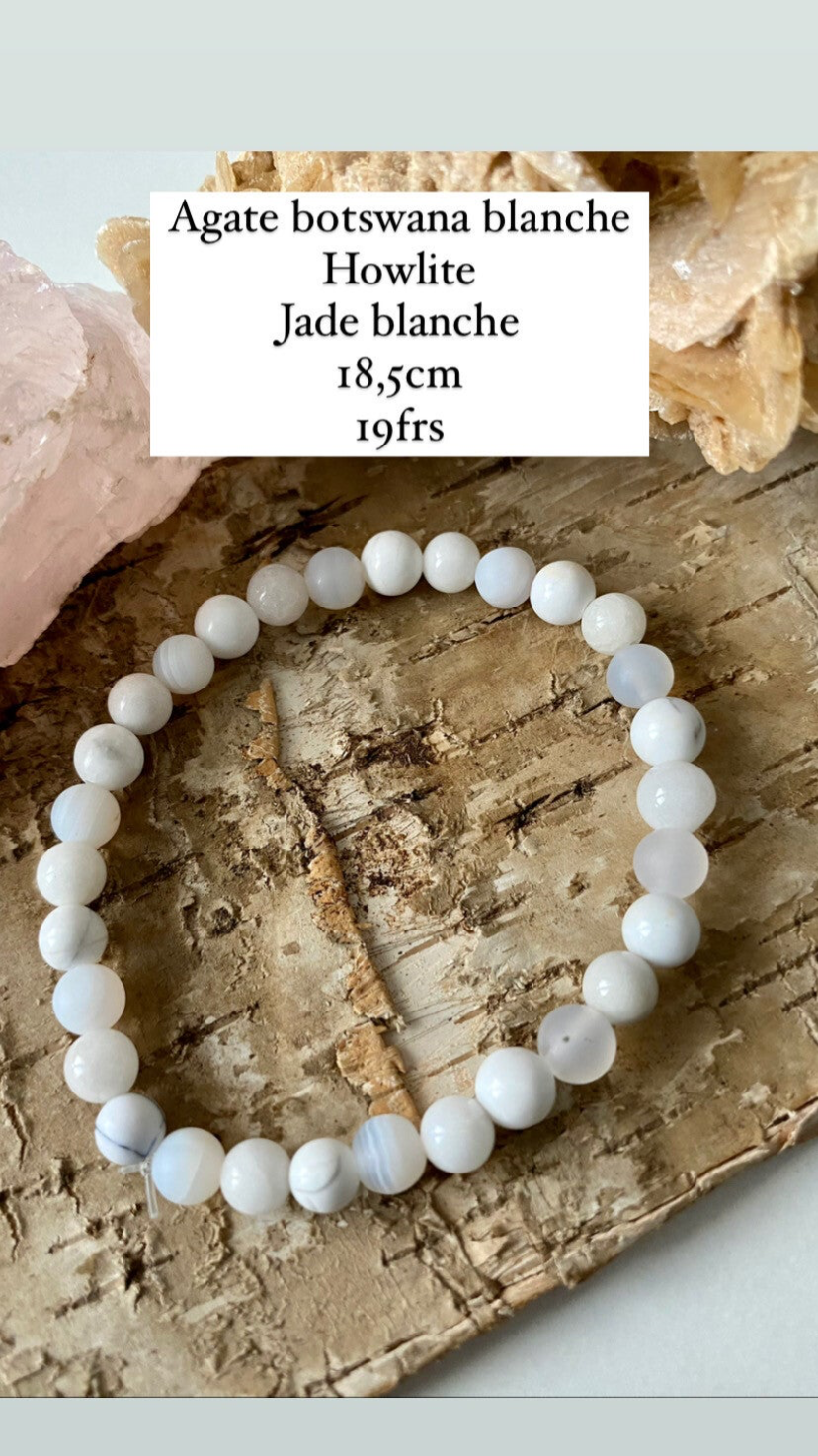 Bracelet Agate Botswana blanche, Jade de Birmanie et Howlite (numéro 52)