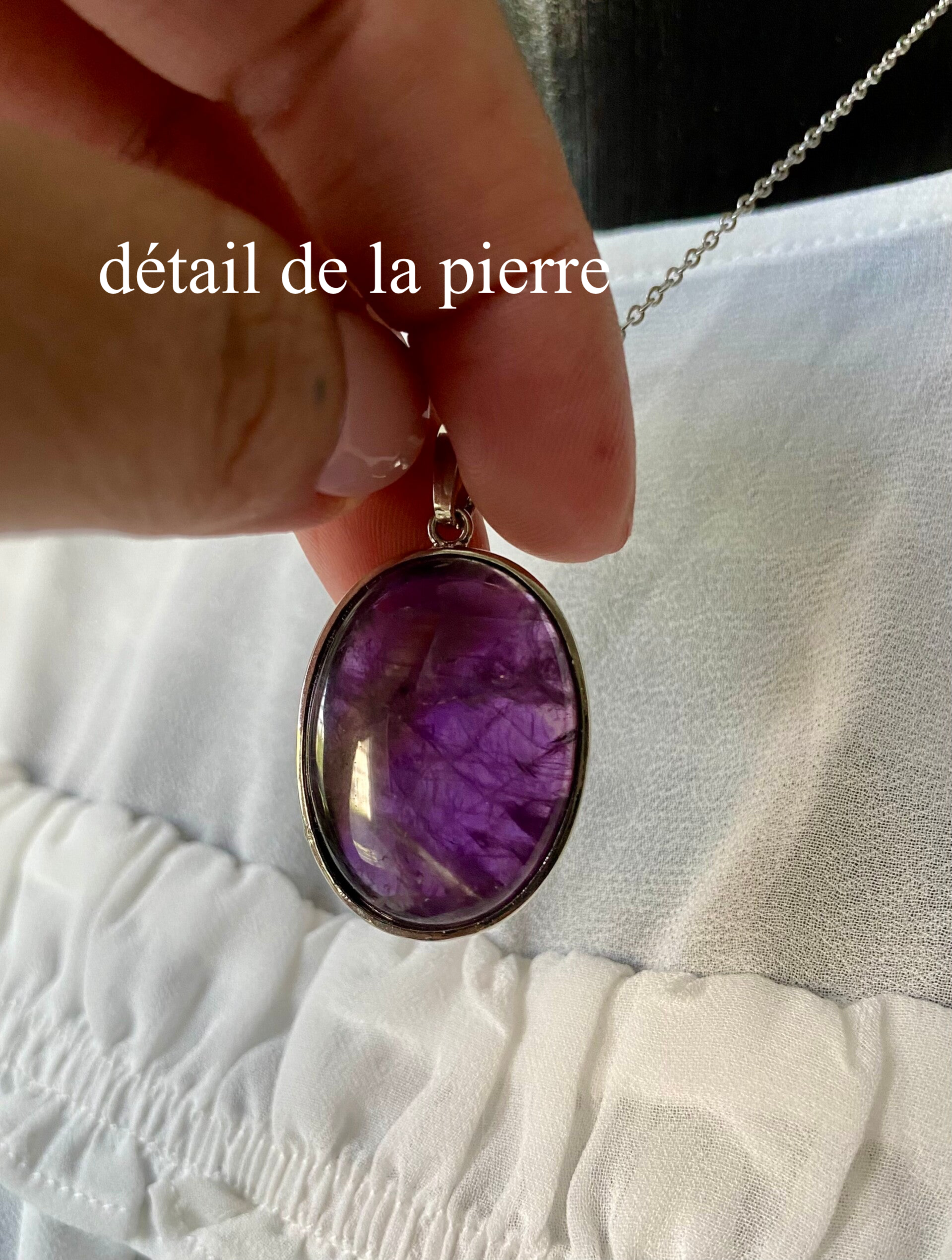 Collier chaîne inoxydable, plaqué argent Améthyste