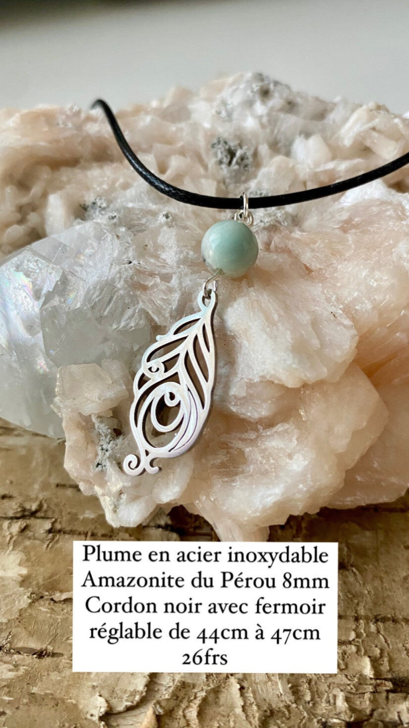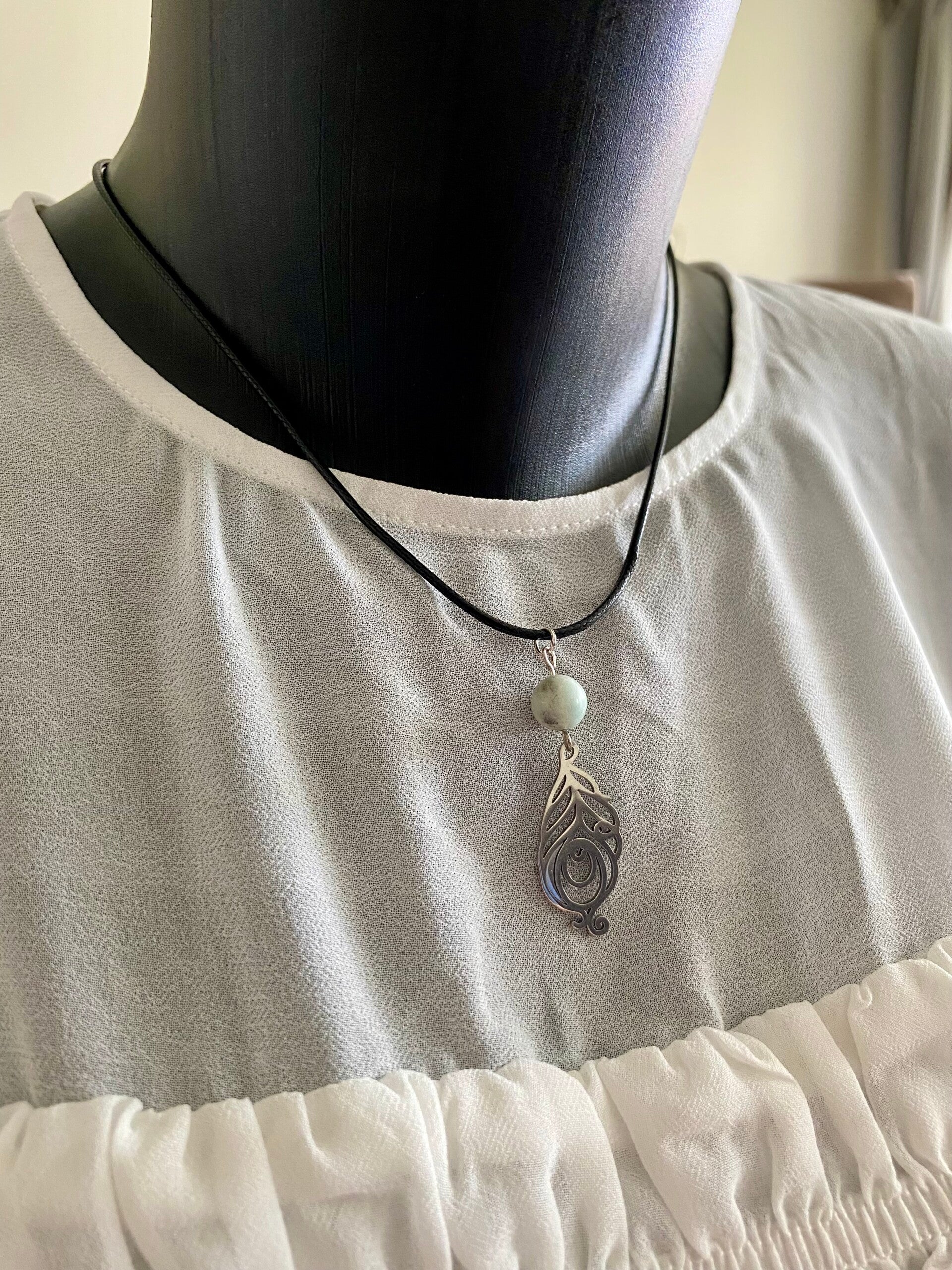 Collier cordon noir réglable, Amazonite