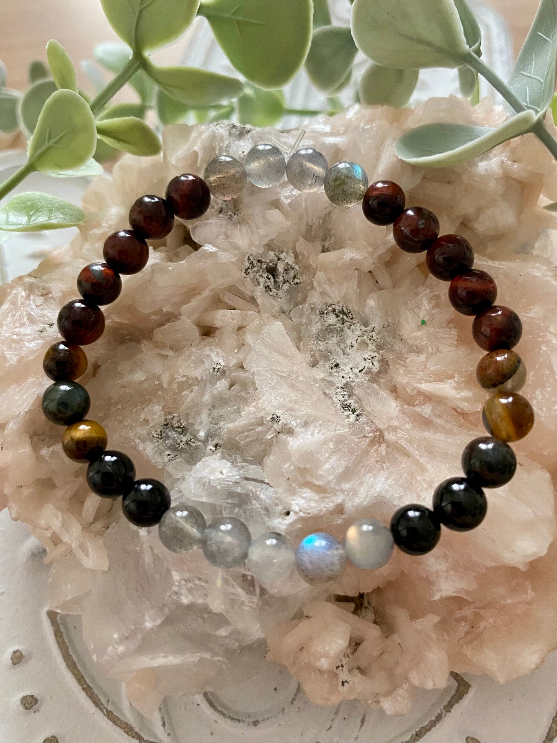 Bracelet Labradorite, oeil de tigre, oeil de taureau, tourmaline noir ( numéro 293)