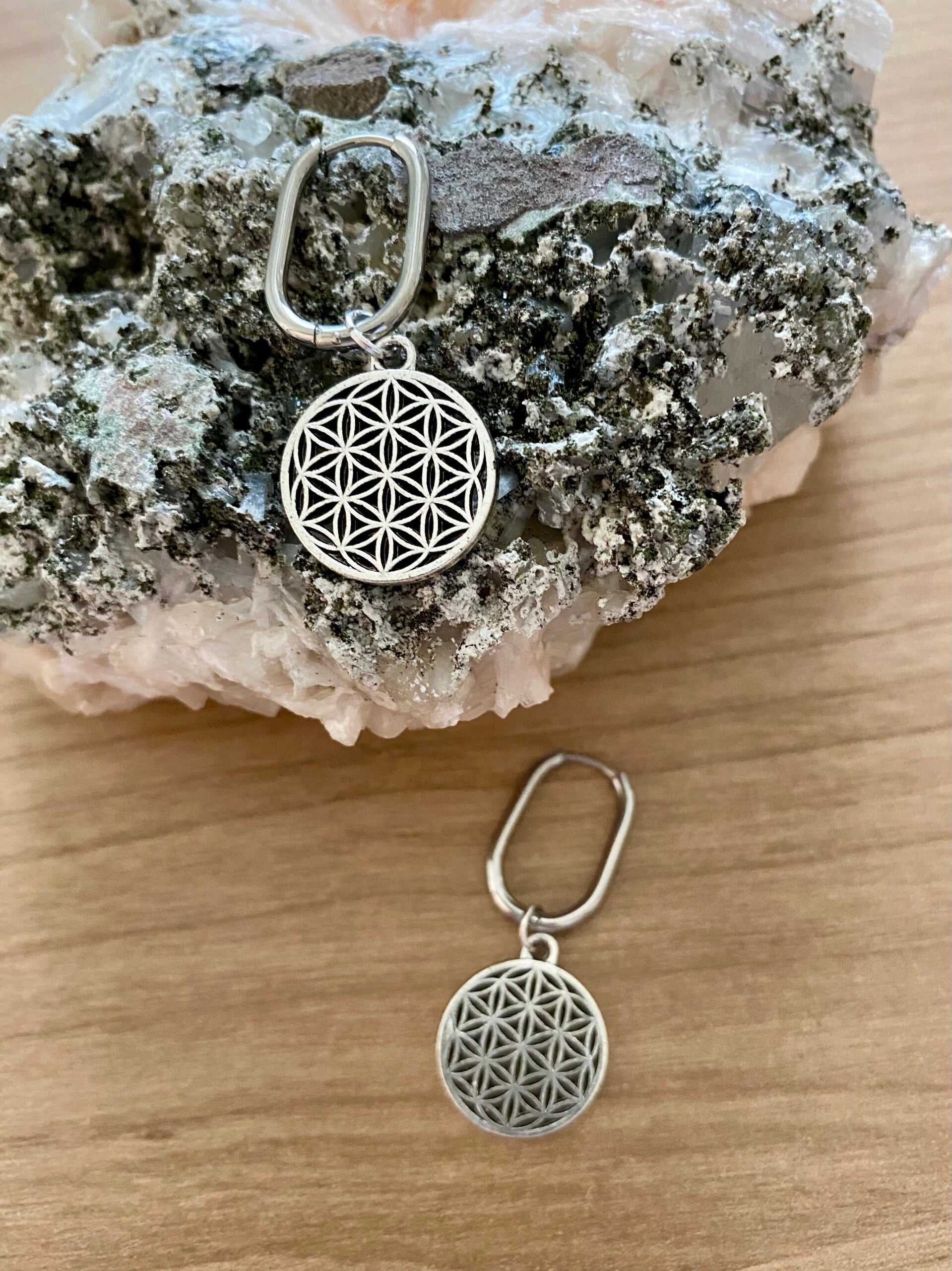 Boucles d’oreilles Créoles et fleur de vie (numéro 221)