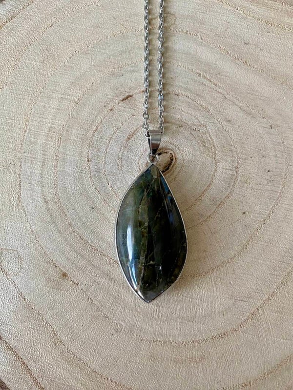 Collier pendentif Labradorite chaîne acier