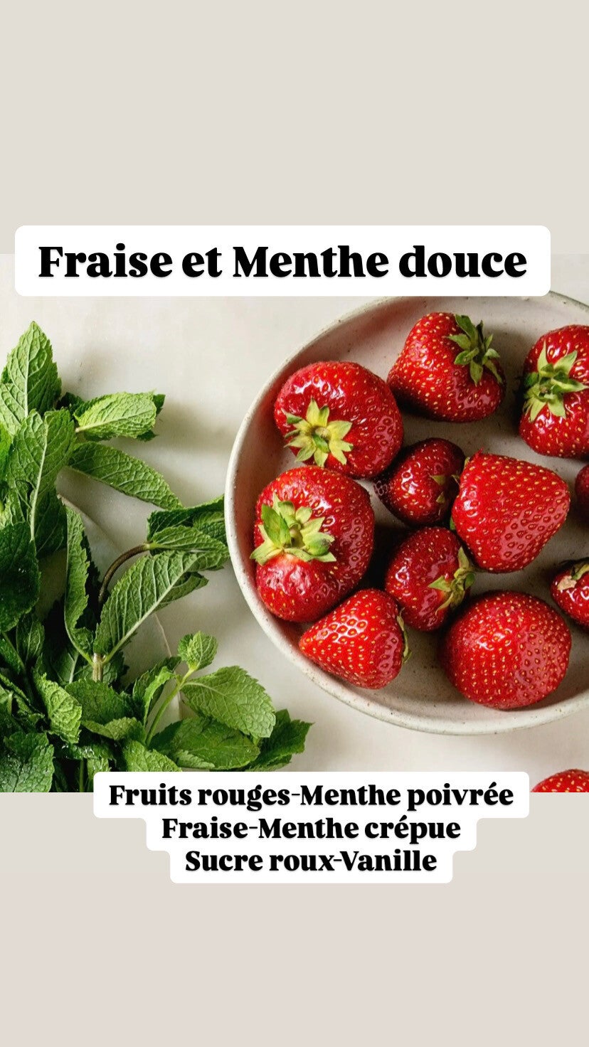 Bougie en cire de soja, senteur Fraise et menthe douce